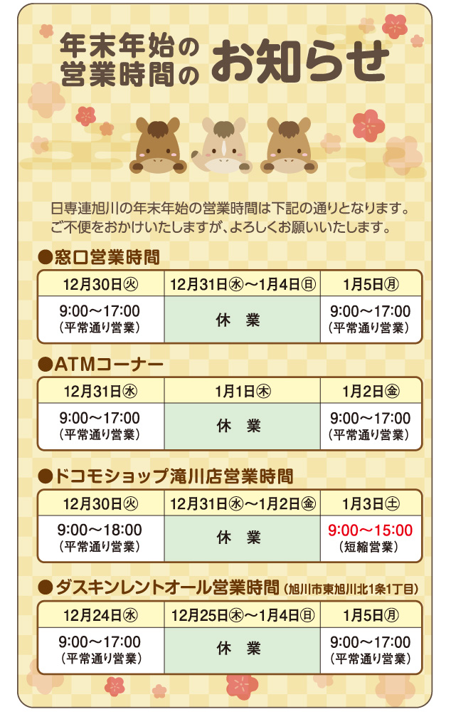 年末年始の営業時間のお知らせ 2025.12.12配信