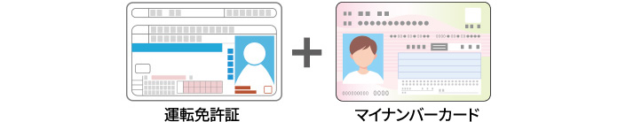 提出例:「氏名」「生年月日」「現住所」がお申し込み内容と合致する【運転免許証】と【マイナンバーカード】