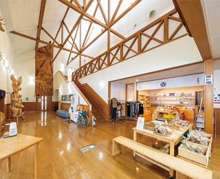 レストランでは下川町の食材にひとつひとつ手をかけた、さまざまなメニューを提供。宿泊だけでなく日帰り入浴のお客様も利用できます。宿泊時の朝食では、「あべ養鶏場の下川六○酵素卵」のたまごかけごはんや、完熟トマトジュース「ふるさとの元気」も味わえます。また、売店は下川町の特産品を紹介するアンテナショップの役割を担い、町内で作られた化粧品やクラフトビール、うどん等の乾麺は旅の記念やお土産に最適です。