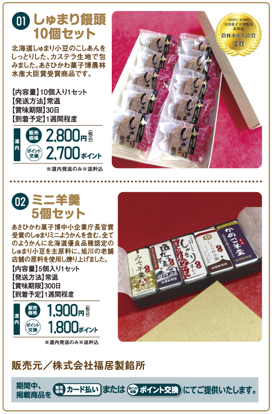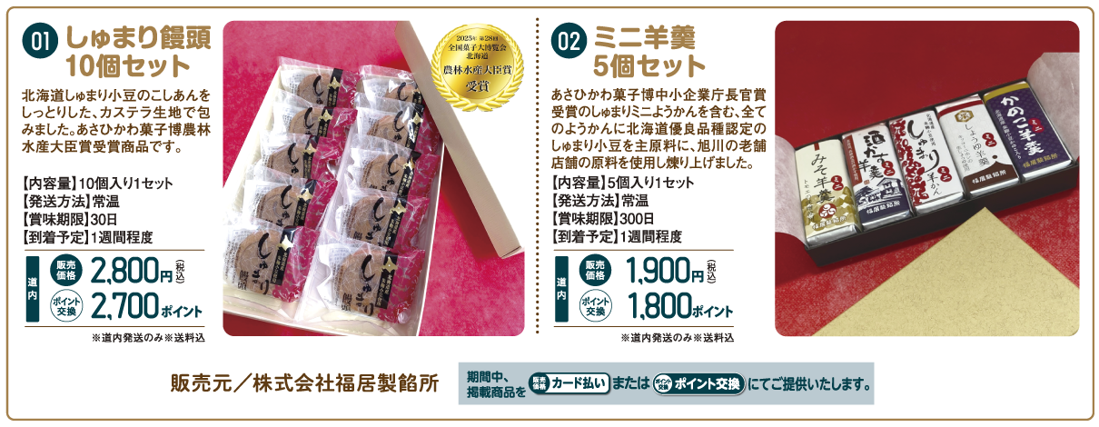 日専連旭川うまいもん市 2026年1月14日 最終更新日時 : 2026年1月14日 kcb-admin 日専連旭川 うまいもん市実施中 受付期間 2026年1月20日(火)〜2026年2月10日(火)まで申込方法 お電話でお取り寄せ ※ポイント交換の場合は、ご注文時の交換、カード払いの場合は翌月にご請求いたします。 お申込み方法 日専連旭川カードをご用意の上、お電話ください。[受付時間]平日9:00〜17:00(土日祝休み) 0166-22-1505